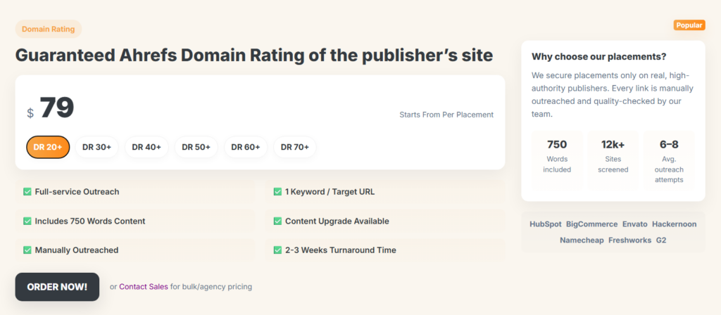 Best For: Brands that want premium DR backlinks, especially those targeting high-authority placements in competitive niches where credibility matters more than volume.